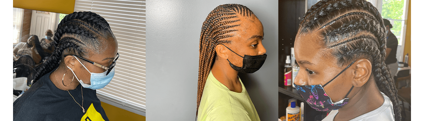 Bella African Hair Braiding also does excellent feed-in braids. Feed-in is a kind of braiding style that is more delicate and small. The great thing about this style is that it can stay in your hair for months. Our professional hairstylists can assist you regardless of your hair type or texture. We are skilled in our craft and will give you a distinct new look at an affordable price. We also offer crochet braids and Senegalese twists. To learn more about our hair braiding services, contact us at Bella African Hair Braiding today!